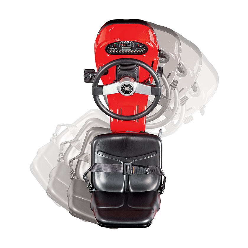 Front axle oscillates 15 ° on each side. This allows the wheels to follow the terrain and stay on the ground.
